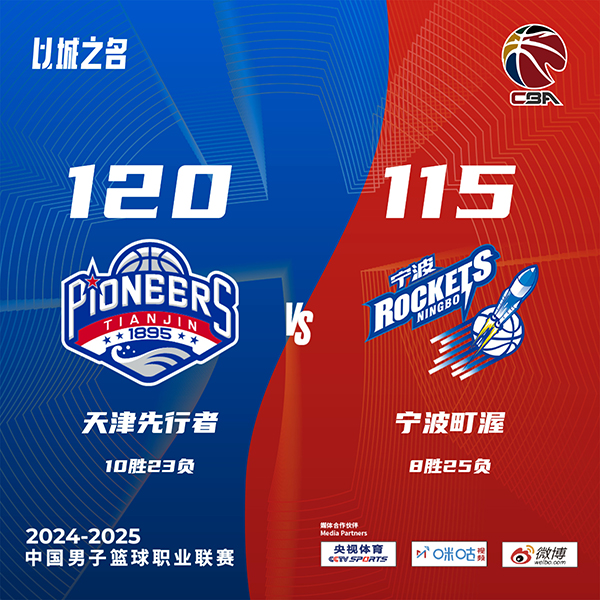 24直播网讯 北京时间1月19日讯 CBA常规赛,天津主场迎战宁波。天津9胜23负排联赛第15,宁波8胜24负紧随其后。上半场,天津连中三分打出15-5的开局,宁波不断冲击内线连投带罚完成反超,此后双方陷入缠斗,比分交替领先,林庭谦连中三分带队打出10-2的攻击波占据主动,宁波连投带罚顽强追赶,半场战罢天津57-52领先宁波。下半场,天津占得先机取得两位数优势,宁波内外开花缩小分差,末节天津稳扎稳打保持优势,宁波采用犯规战术,乔丹-霍华德连中三分将分差迫近到只剩2分,林庭谦两罚全中。最终,天津120-115击败宁波,送给对手9连败。