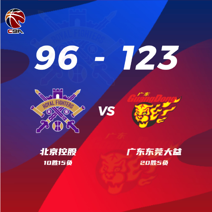 末节,广东张昊、张皓嘉相继得分将分差再度拉大至30分以上,随后胡明轩领衔张昊等年轻球员,双方展开持续拉锯,广东保持30分上下领先,全场结束,广东123-96大胜北控。