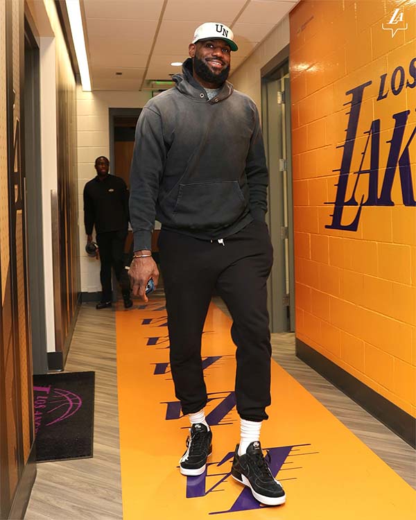 詹姆斯身穿黑色运动裤和渐变配色的连帽卫衣,戴着白色棒球帽,单手抄兜笑着入场;上一次洛城德比,詹姆斯因伤休战,湖人不敌快船;今日洛城德比将是两队本赛季常规赛最后一次交手,此前3次交手,湖人2胜1负,詹姆斯出战的两场分别拿到35分12助攻7篮板和25分8篮板7助攻。