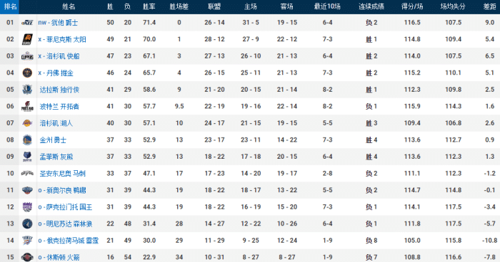 狂野西部!13队仍未确定名次,仅马刺第十和火箭锁定倒数第一