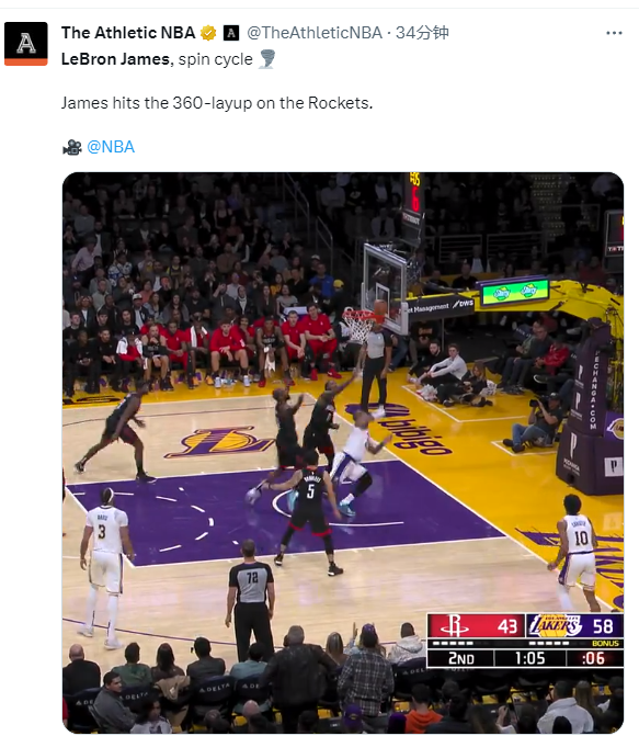 詹皇16+7连刷历史第一:与火箭主帅争吵双双吃T 360度疯狂一球引热议