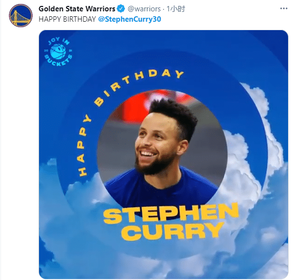 NBA官方晒出库里留着一头地垄沟发型的帅照,发推写道:让我们一起恭喜库里33岁生日快乐;勇士官方的祝福想当简洁明了:生日快出来,斯蒂芬-库里。