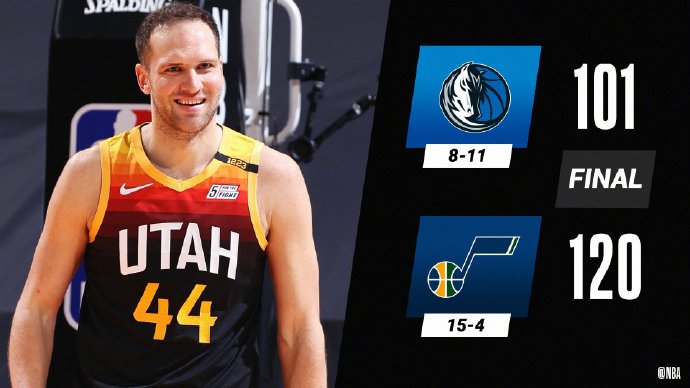 爵士120-101擒获独行侠 博扬32分 东契奇25+6+7