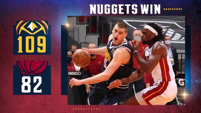掘金109-82浇灭热火 约基奇21+11 掘金6人得分上双