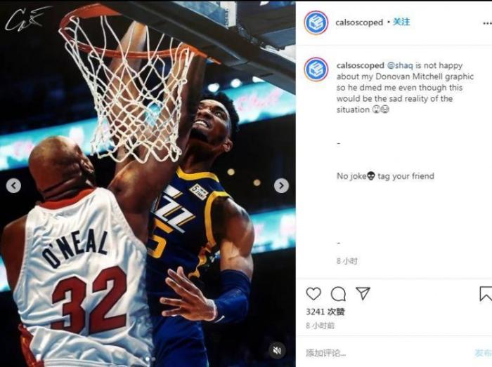 这个P图很有羞辱性,米切尔的弹跳能力的确很不错,参加过扣篮大赛,比赛中也经常上演残暴劈扣,但是如果是在实战中隔扣奥尼尔难度系数还是挺高的。毕竟奥尼尔巅峰期可是个篮下怪兽,身型和力量所向披靡,同时脾气还很火爆,很难容忍别人在他身上隔扣他。