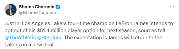 詹姆斯告别5140万选项 湖人未来何去何从