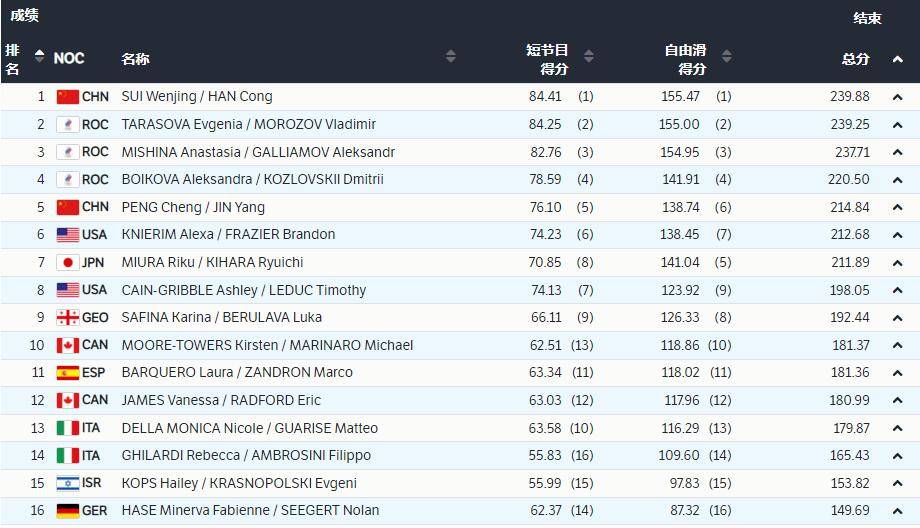 此前,冬奥会花滑项目已经结束了团体赛以及男女单的争夺。在团体赛中,中国队获得第5名,创造了历史最好成绩。而在男单项目上,金博洋获得第9名,朱易则在女单项目排名短节目第27位,无缘自由滑。