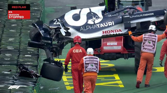 在Q1还剩12分01秒时,日本车手角田裕毅滑出赛道,车尾被护墙撞烂,引发赛会红旗。当时,只有斯特罗尔、莱科宁、米克-舒马赫、拉塞尔和马泽平5位车手做出了有效成绩。
