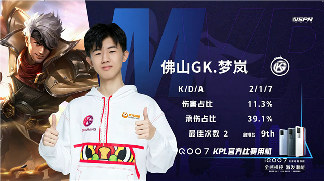 佛山GK选用:马超、孙膑、橘右京、夏侯惇、干将莫邪
