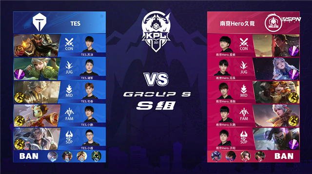 2分16秒,南京Hero拿下暴君。4分40秒,下路团,双方2换2,马可波罗拿下双杀。5分10秒,南京Hero破掉TES下一塔。7分07秒,南京Hero破掉TES中一塔。7分44秒,中路团,南京Hero击杀马可波罗。8分11秒,南京Hero破掉TES下二塔。9分48秒,TES拿下先知主宰。10分47秒,TES抢下暗影暴君,随后团战TES打出1换4,不知火舞与马可波罗拿下双杀。11分27秒,TES下路击杀墨子团灭对手,随后破掉南京Hero中路高地。12分28秒,TES不知火舞击杀澜,随后控下暗影主宰。15分09秒,TES拿下暗影暴君。16分12秒,TES破掉南京Hero上高地。16分35秒,南京Hero击杀盘古。17分20秒,南京Hero墨子击杀不知火舞。17分50秒,南京Hero拿下暗影主宰。19分27秒,南京Hero澜击杀太乙真人。19分58秒,TES中路反打打出1换4。20分35秒,TES破掉南京Hero水晶拿下胜利。