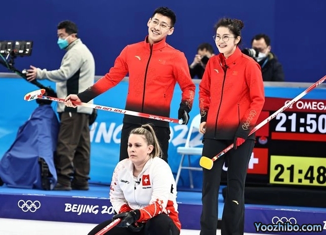 24直播网讯2月2日讯 2022年北京冬奥会揭幕战冰壶混双循环赛,在“冰立方”进入到第1轮的争夺。中国组合凌智/范苏圆迎战瑞士组合马丁-里奥斯/燕妮-佩雷特,面对平昌冬奥会银牌得主,90后的中国组合一上来气势如虹,一上来就连续偷分,并以3-2领先结束上半场的比赛。