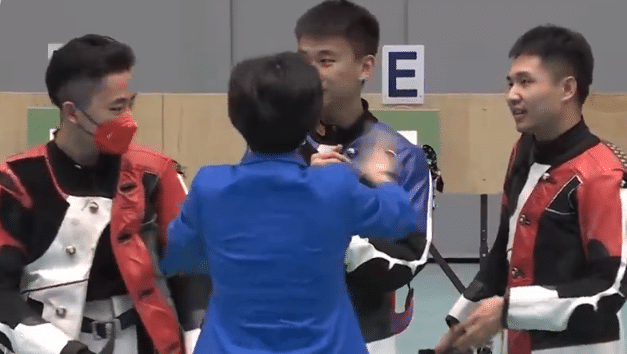 杨皓然这边,虽然无缘三连冠,但杨皓然还是非常大气的给张常鸿送上拥抱和祝福,祝贺他斩获金牌。随后杨皓然还和获得铜牌的刘柏辰拥抱,三位斩获奖牌的选手一起合影,脸上都露出了笑容。对于杨皓然来说确实是非常可惜,尤其是当进入到最后一组之前一度处于领先,无奈的是被张常鸿逆转,同时在最后的一枪无缘冠军。昨天杨皓然和杨倩的“杨杨组合”刚刚拿下了金牌,没有能够连续拿下金牌,很遗憾。