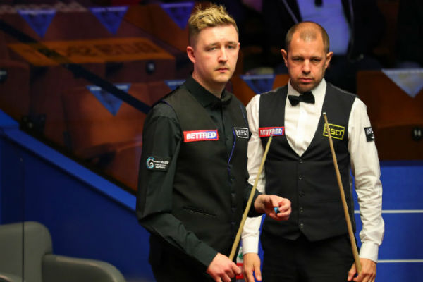 第13局,K-威尔逊率先上手,但拿下14分后断掉。霍金斯单杆拿下69分后,再次出现关键失误。K-威尔逊抓住机会,单杆打出56分一杆清台,以70-69再次单局逆转1分险胜。至此,K-威尔逊在第二阶段已经连胜5局,加上第一阶段最后一局,实际已经连胜6局。第14局,霍金斯终于没再给对手扩大分差的机会,在一番防守大战后,凭借多次上手,以78-51追回一局。第15局,霍金斯又打出单杆52分,以89-0零封再扳一局。第16局,霍金斯凭借单杆67分,以68-4再追一局,在连胜3局后,以大比分7-9暂时落后结束第二阶段比赛。