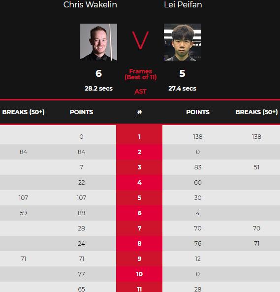 雷佩凡单杆70分,以70-28拿下第七局,单杆71分以76-24拿下第八局,雷佩凡5-3赛点。