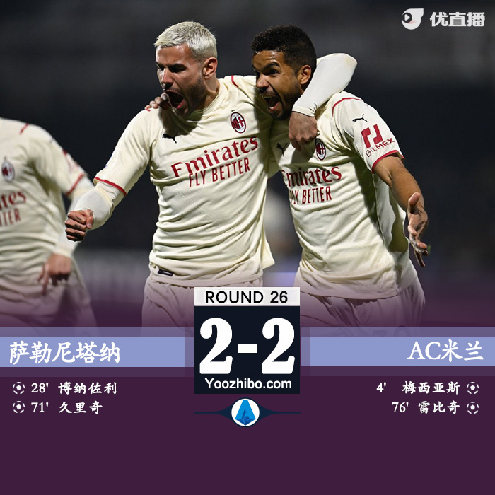 AC米兰2-2萨勒尼塔纳 梅西亚斯雷比奇破门